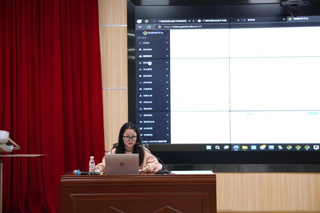 财务处处长陈健颖主持会议并作部署讲话,培训围绕智慧财务系统建设目的、系统上线带来的变化、报账过程注意事项以及下一步工作计划四个方面展开。陈健颖指出,智慧财务系统的上线,将进一步加快财务智能化建设、实现“数据多跑路、师生少跑腿”的高效服务。