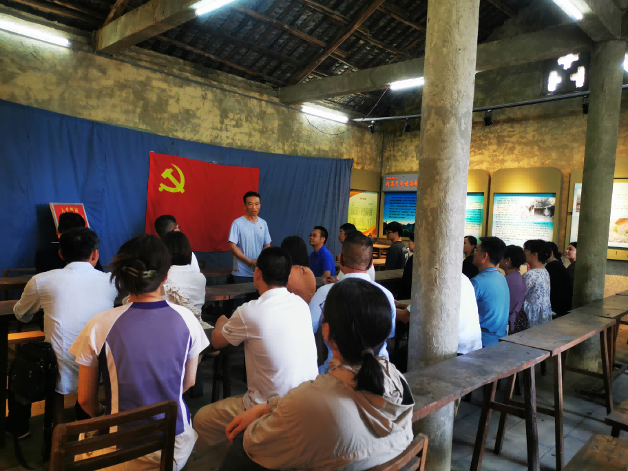 当日上午三个支部的党员抵达田东县思林镇广养村,开展了“深入调研,严明纪律 —— 战地烽火”现场教学活动。田东县委党校黄俊老师详细介绍了鹧鸪坳伏击战背景,生动描绘了当年红七军战士们在艰苦环境下,凭借坚定信念和顽强斗志与敌人浴血奋战的场景,让党员干部们深刻感受到战争的残酷和红七军的英勇无畏。随后,黄老师介绍了那叭医疗站抢救伤员事迹。医疗站的医护人员和当地廖家神医在物资匮乏、环境危险的情况下,要土法上马,土洋结合,全力救治每一位伤员,在300多名的伤员中仅有30多名伤员因伤势过重牺牲外,其余伤员均得到救治。展现了红七军为民族解放和人民谋幸福而浴血奋战,深得当地群众的拥护和爱戴,自发到医疗站为受伤官兵服务。大家被医护人员的奉献精神所打动,深刻体会到红七军始终将人民利益放在首位的崇高情怀。