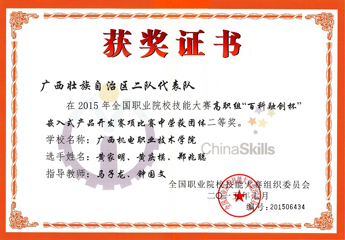 2015年全国职业技能大赛二等奖