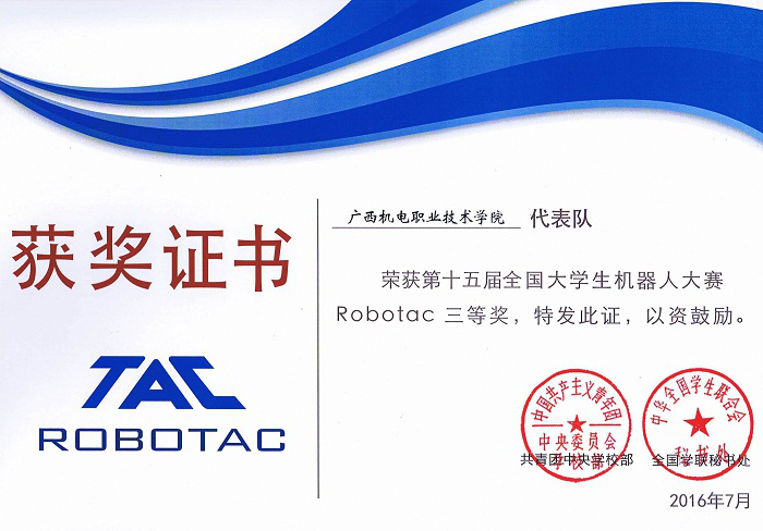 2016年全国机器人大赛三等奖
