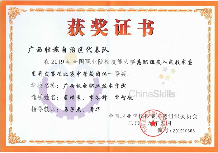 2019全国职业技能竞赛团体一等奖