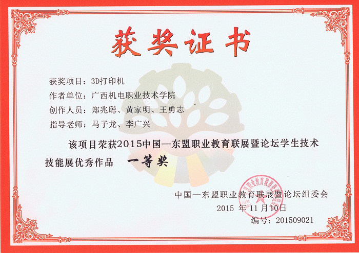 2015年东盟展获奖证书