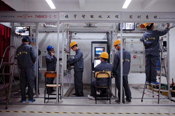 建筑智能化工程技术专业学生正开展建筑智能化综合实训