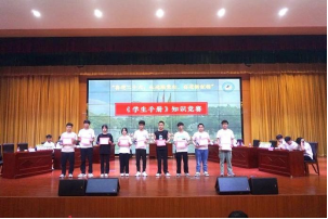 我院于2022年4月26日下午举办“喜迎二十大,永远跟党走,奋进新征程”《学生手册》知识竞赛决赛,比赛分为自我介绍、必答、抢答、选答等四个环节 。