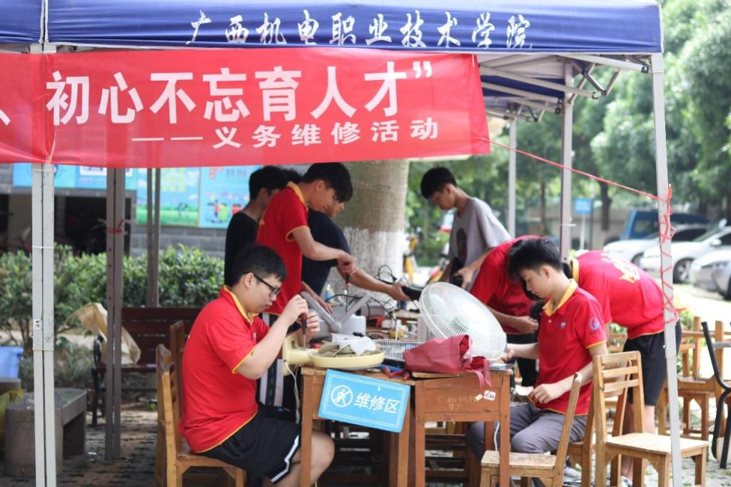 本次开展“青春筑梦强技能,初心不忘育人才”义务维修活动,从早上8点正式开始一直持续到下午的两点,一共历时6个小时,活动过程中,维修人员有礼貌地接待来进行维修的老师,细心负责的对接受的物品进行登记、修理,使整个活动有条不紊的进行。