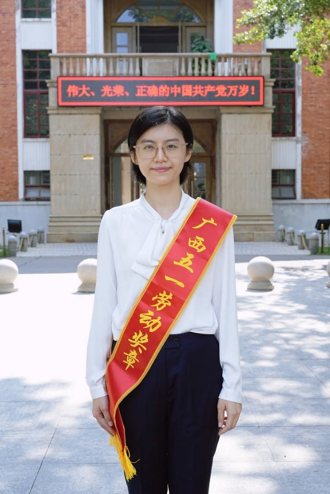 她的工作得到了学校和上级部门的肯定,获得广西五一劳动奖章。于她而言,这是一个沉甸甸的责任,她将继续发挥青年教师的光和热,为教育事业贡献一份力。