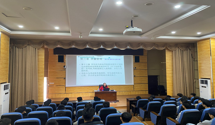 我院学生工作处、电气工程系相关负责人在第一学术报告厅对新生致欢迎辞,并对我院学生管理制度及相关政策进行了解读。