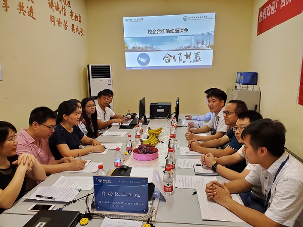 活动的第二部分是校企合作座谈交流会,也是本次活动的主要环节。首先,周航主任详细介绍了南宁轨道交通集团运营分公司维修中心的基本情况和公司党建工作开展情况,并结合公司发展历程详述了在党的政策引领下企业所取得的显著成效,阐述了该企业党群工作目标、工作方法、工作重点、工作创新、工作特色等五个方面。喻宁娜副书记感谢公司的热情接待,并就我系党建工作情况做了介绍,对进一步加强双方校企合作提出建议,希望地铁公司与我院保持良好的校企合作关系,在党建引领下,能进一步深化发展。随后校企双方就如何发挥党建引领作用,做好党建带团建工作,积极探索校企优势互补、资源共享、实习就业等方面进行了深入的交流,现场气氛热烈。