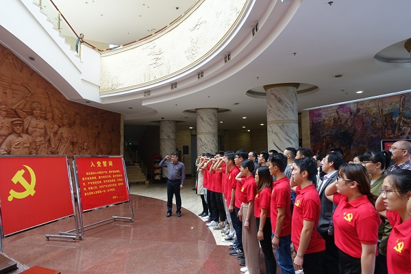 来到百色起义纪念馆,全体党员参观学习该馆的序厅、“起义厅”、“英烈厅”、“功臣厅”、“小平厅”等。开展“传承红色基因,坚定理想信念”专题学习讨论活动,在开展加强红色基因传承讨论中,参会人员踊跃发言,结合参观学习谈感想、结合自身工作谈打算,进一步强化了党性修养,坚定了理想信念。党员们面对鲜红党旗庄严郑重地举起右手,在系党总支部书记林勇坚带领下,重温入党誓词,激情有力的声音向党宣誓着自己的忠诚、对党的热爱,激荡起了心中沉甸甸的责任感和使命感。