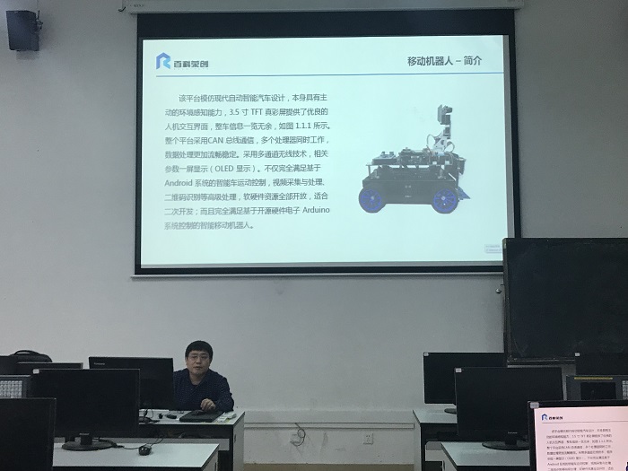 赛项说明会在电气系办公楼一楼离线编程实验室举行,裁判长赵中华一一列举了竞赛平台的核心板以及所需的开发环境,讲解了赛项所涉及的智能车库、特殊地形、智能交通灯等标志物,最后重点提出了此次广西区的比赛将突破往年的题型与国赛保持一致,加入从车的应用。随后,有参赛队对新的标志物的控制方法提出了疑问,裁判长逐一进行了详细的解答。会后,裁判长以及参赛院校指导教师在李广兴主任的带领下到第一实训教学楼创新实验室参观了竞赛场地。