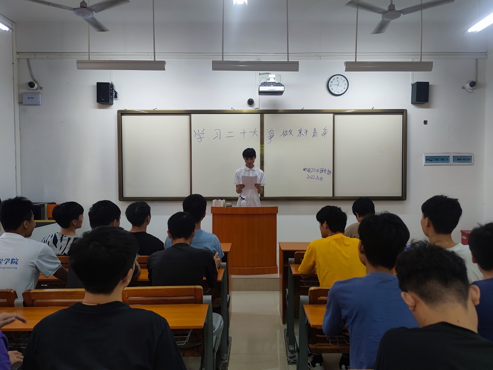 各班团支部10月18日下午开展“学习党的二十大,争做新青年”主题团课。课上,青年团员们围绕党的二十大报告内容分享学习心得,纷纷表示,奋进新时代,青春正当时,要把个人的‘小我’融入祖国的‘大我’中,认真学习专业知识,刻苦锤炼技术本领,在实现民族复兴的赛道上奋勇争先。