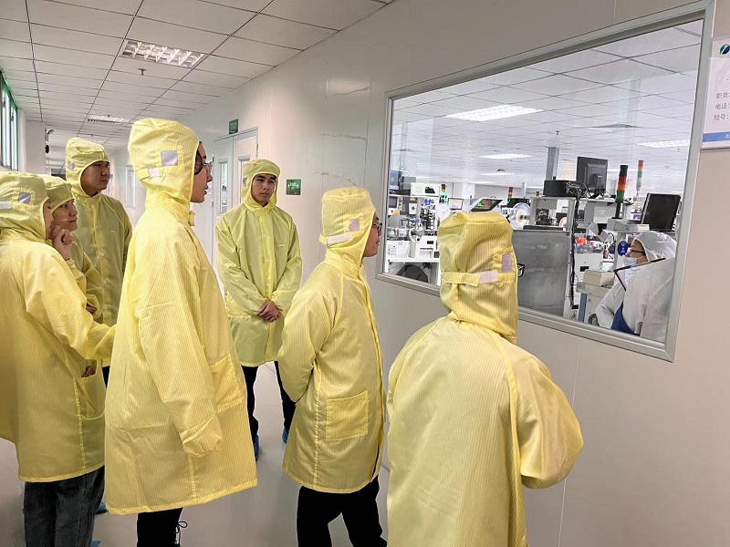 座谈后,罗法荣副院长与辅导员观摩生产线运转流程,了解产品生产工序与设备在实际生产中的应用,近距离感受各企业的生产线工作环境。