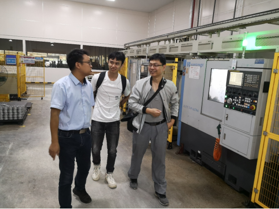 院教师一行在广西光裕新能源汽车空调压缩机有限公司维修主管蒋延桂的陪同下首先参观了公司的厂区,并认真聆听了公司的发展历史。随后,还与公司相关负责人进行座谈交流。