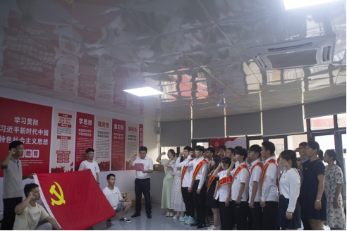 接着,由学生党支部书记玉洁琼讲解党员档案归档级组织关系转接事宜。随后,由我院党委书记钟国文带领全体与会党员进行入党宣誓。参会党员在党旗下庄严肃立、举起右拳,以洪亮的声音庄严宣誓,用铿锵有力的声音,重温入党誓词,“我志愿加入中国共产党,拥护党的纲领,遵守党的章程,履行党员义务……”。宣誓铿锵有力,用铮铮誓词宣示了对马克思主义的信仰,对共产主义和社会主义的信念及对党和人民的忠诚,赓续中国共产党人的精神血脉。