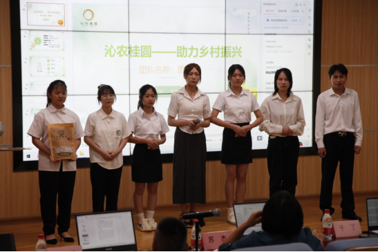三等奖8名,分别是:《沁农桂园——助力乡村振兴》《“Hui”修邦:集维修、培训、就业与创新为一体的平台》《剪茶茬儿--油茶树自适应修剪系统技术品》《“柳绿”数字化助农平台》《桂果园饲料——优质绿色饲料行业的领跑者》《追梦青年——新时代青年一辈家乡继承者》《笙起庆百节——安锤民族文旅创新助力乡村振兴》《盆植管家:应闲而生》