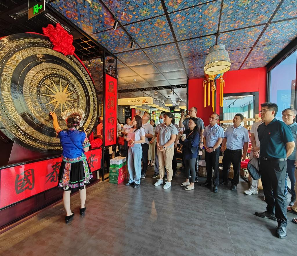 活动过程中,党员同志们参观了世界最大壮锦《美丽壮锦献给党》,近距离欣赏馆内各少数民族华美的服饰、挂饰等壮锦文物、文化遗产,直观感受壮锦文化的独特魅力,深刻体会民族特色的历史文化内涵,进一步促进民族非遗传承,增强文化自信,深化弘扬民族文化的使命感。