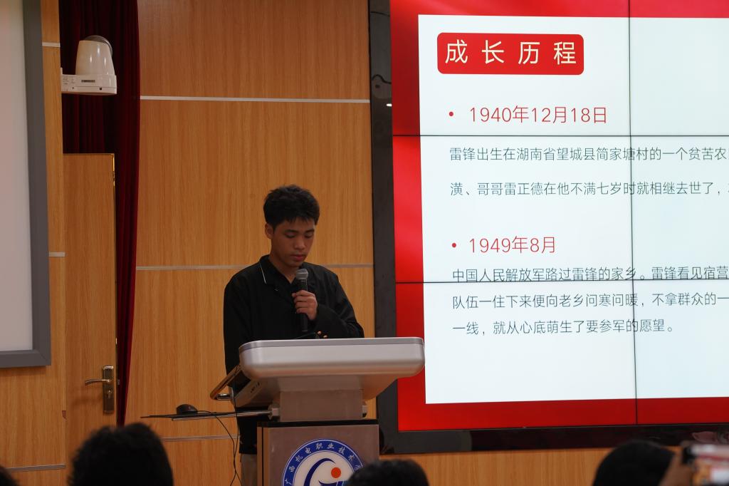 比赛现场,17位赛选手分享了他们对雷锋精神的理解和感悟,其中既有对雷锋生平事迹的深情回忆,也有对雷锋精神内涵的深刻剖析,更有对雷锋精神的传承赓续。他们从不同角度展示了雷锋精神的伟大之处,强调了无私奉献、助人为乐、爱国爱民等精神品质在当代社会的重要意义。选手们还结合自身的实际经历,分享了他们在学习和生活中践行雷锋精神的点滴故事,展现出了新时代青年对雷锋精神的传承与发扬。选手们激情饱满,真情流露,精彩的宣讲充分展示了同学们昂扬向上的精神风貌,真切表达了他们自觉践行雷锋精神的信念和决心。