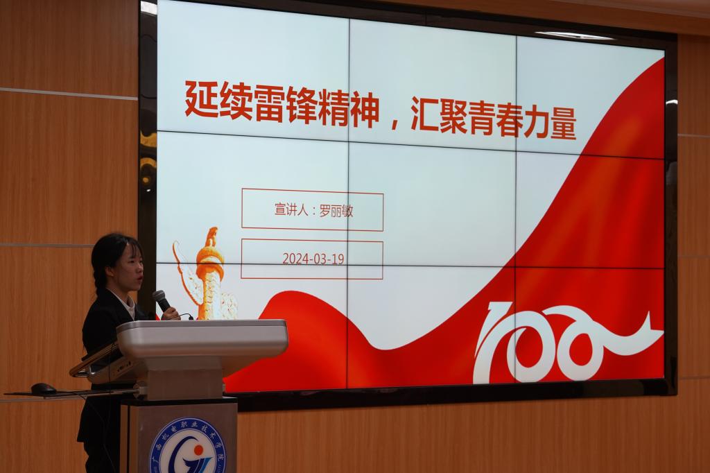 为深入学习贯彻党的二十大精神和习近平总书记关于学雷锋志愿服务的重要论述,引导和号召广大青年学生深刻把握雷锋精神的丰富内涵和实践要求,传承和践行雷锋精神,用宣讲促实际行动,深入推动学院精神文明建设走深走实,2024年3月19日晚,我院在博远楼1号报告厅隆重举行“学雷锋·文明实践我行动”主题宣讲比赛。我院团委书记陈婷、专任教师欧道源、学生第二党支部书记朱椿燕、学生第二党支部宣传委员吴文静担任评委,我院党委副书记覃伟纳出席比赛。