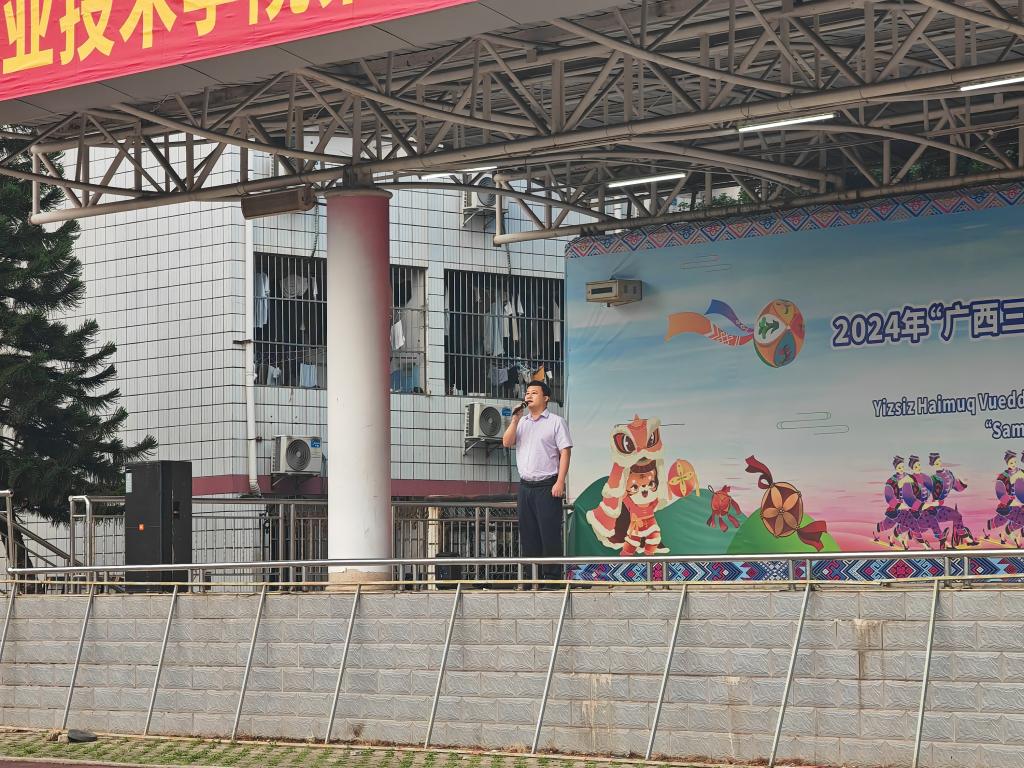 升旗礼毕,我院党委副书记、副院长覃伟纳传达了学校《关于印发学校内设教学单位设置的通知》精神和内容,“为完整准确全面贯彻落实习近平总书记对广西重大方略要求,主动策应广西新一轮工业振兴三年行动,积极服务‘10+5+4’现代化产业体系,着力打造广西领先、国内一流、国际知名的高水平智能制造特色学校,学校进行了内设教学单位调整,调整后,我院更名为‘电子信息工程学院’。这也是我们学院自成立以来第一次开展升旗仪式,意义重大。我们学院电子信息工程技术专业是自治区双高建设专业群,也是学校重点建设和打造的专业群,我们每一位同学都是这个专业群里的重要一员,我们应该为此感到自豪,同时深感责任重大,更要把握新征程的机遇,积极进取,勤奋学习,要珍惜时光,合理安排学习和生活,劳逸结合,保持良好的身心状态,师生携手共进,凝心聚力为学校高质量发展新篇章贡献自己的力量。”