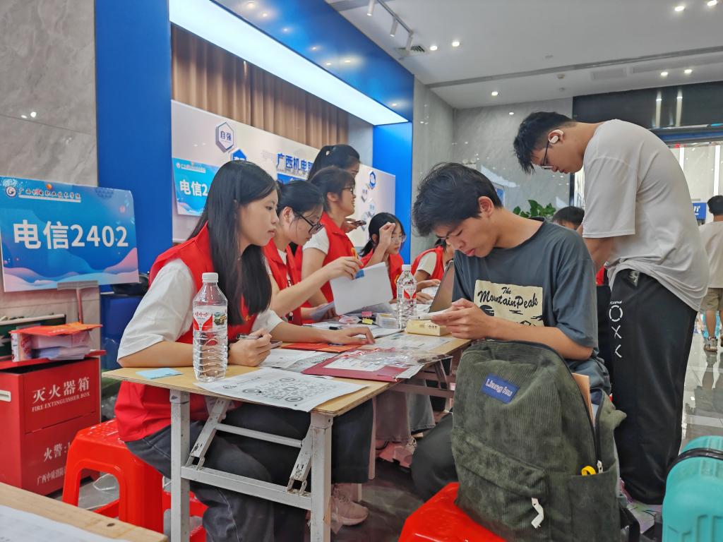 学院领导、辅导员、专业教师也一直坚守迎新现场,指导新生按照流程有序办理入学手续,及时解决现场遇到的问题,解答专业相关疑难困惑,传递学院的关怀与期望。