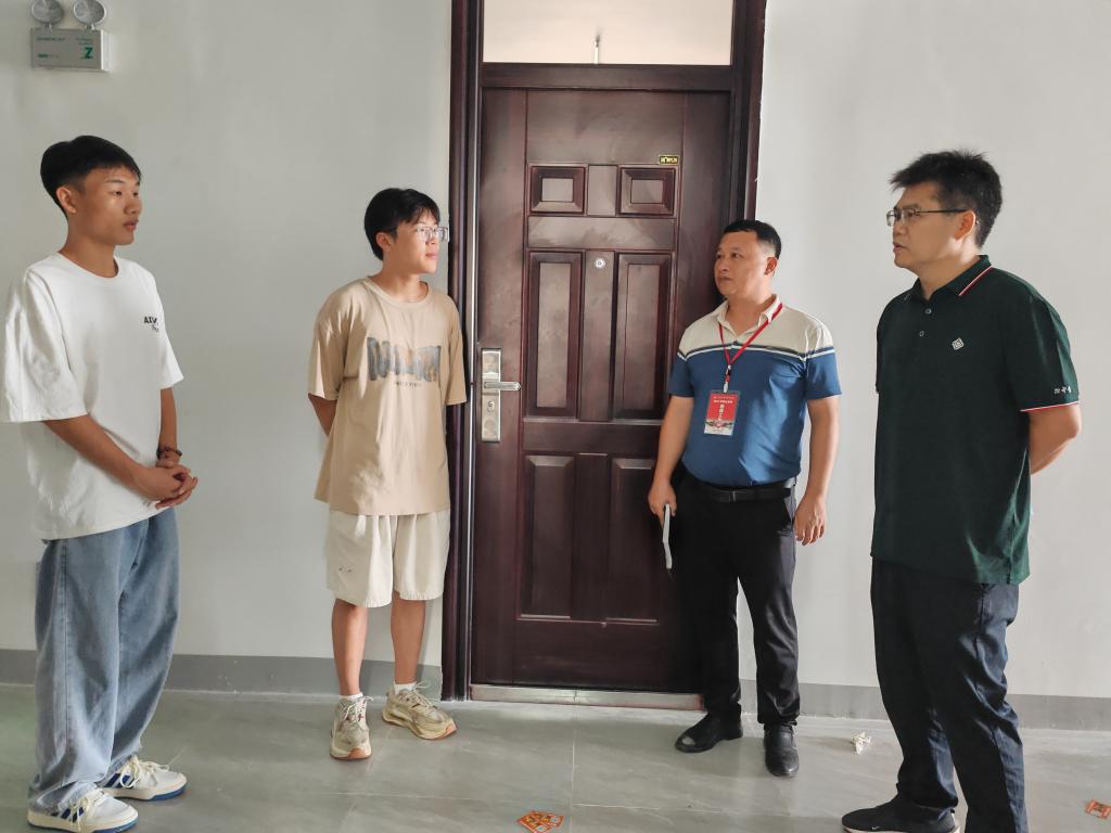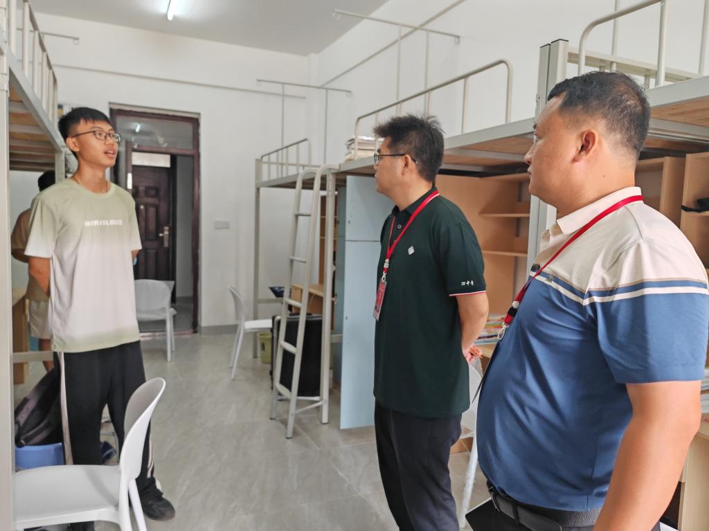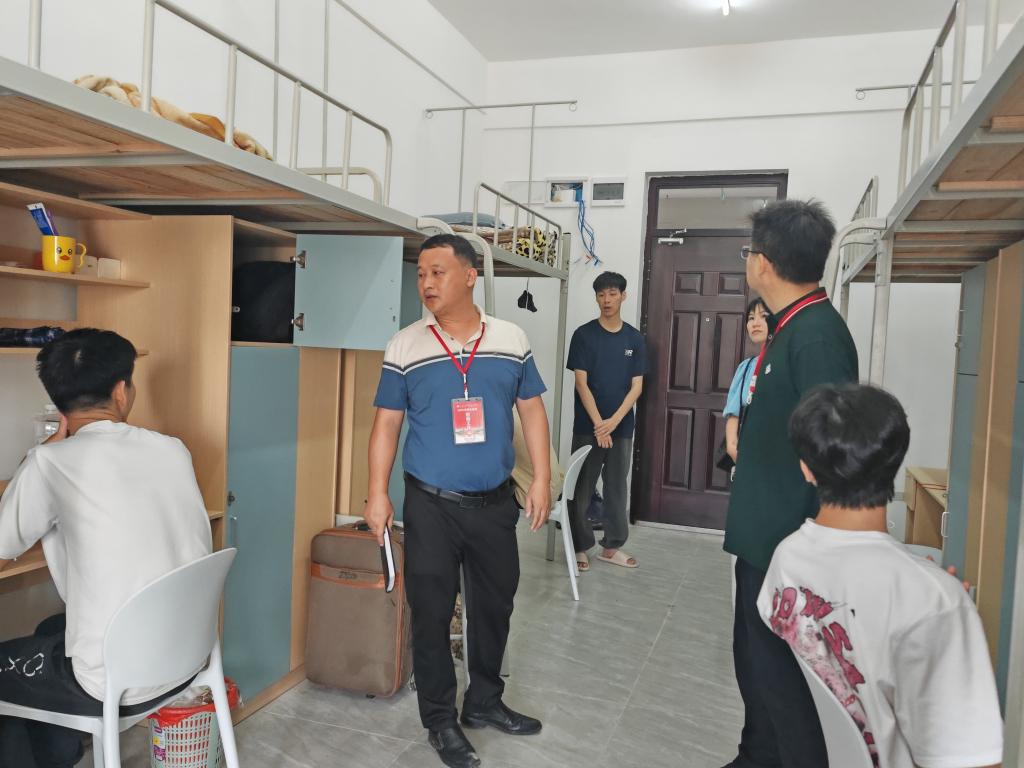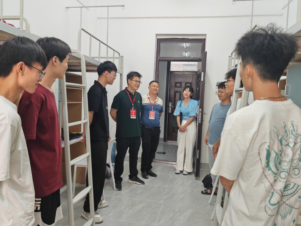 为全面了解我院2024级新生入学适应情况,帮助新生们更好更快地融入新集体与新环境,9月8日上午,我院党委书记、院长钟国文,党委副书记覃伟纳带领新生辅导员、助班走访2024级学生宿舍,了解新生各方面情况。