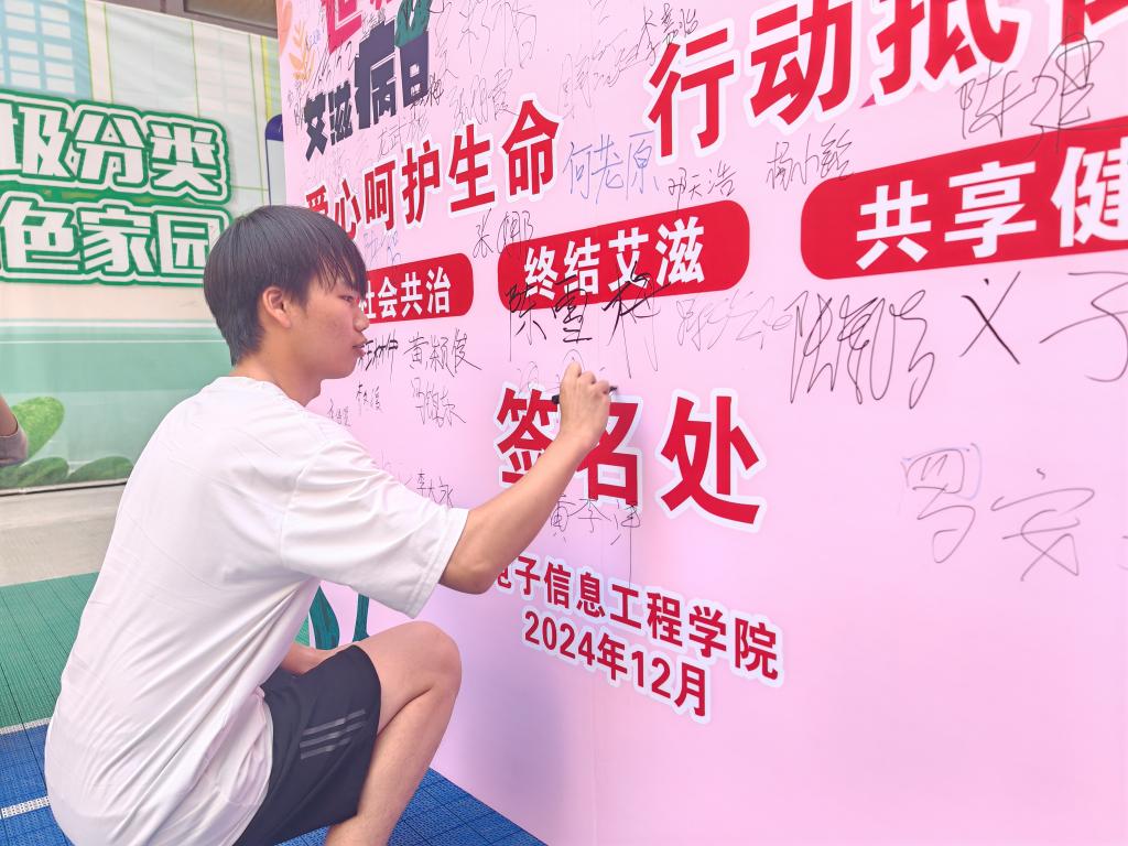 学院还精心组织了丰富多彩的线下活动,包括防艾知识问答与“爱心呵护生命,行动抵制艾滋”签名活动。在知识问答环节,学生们积极参与,通过趣味互动加深了对艾滋病防控知识的记忆与理解;而在签名活动中,学生们纷纷在签名展板上留下自己的姓名,以实际行动向艾滋病说“不”,展现了青春的力量与担当。