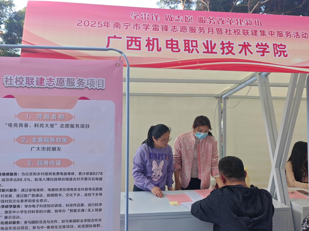 为了全面贯彻党的二十大和二十届二中、三中全会精神,深入学习贯彻习近平总书记重要论述和指示精神,充分发挥志愿服务实践育人功能,丰富大学生校园生活,弘扬雷锋精神,3月2日下午,万象城官网“全国青年文明号”——电子科技协会受邀参加由中共南宁市委员会社会工作部在南宁市西乡塘区大学东路万达广场1号门前广场联合各相关部门举办2025年南宁市三月“学雷锋”活动月集中志愿服务暨社校联建洽谈会活动。