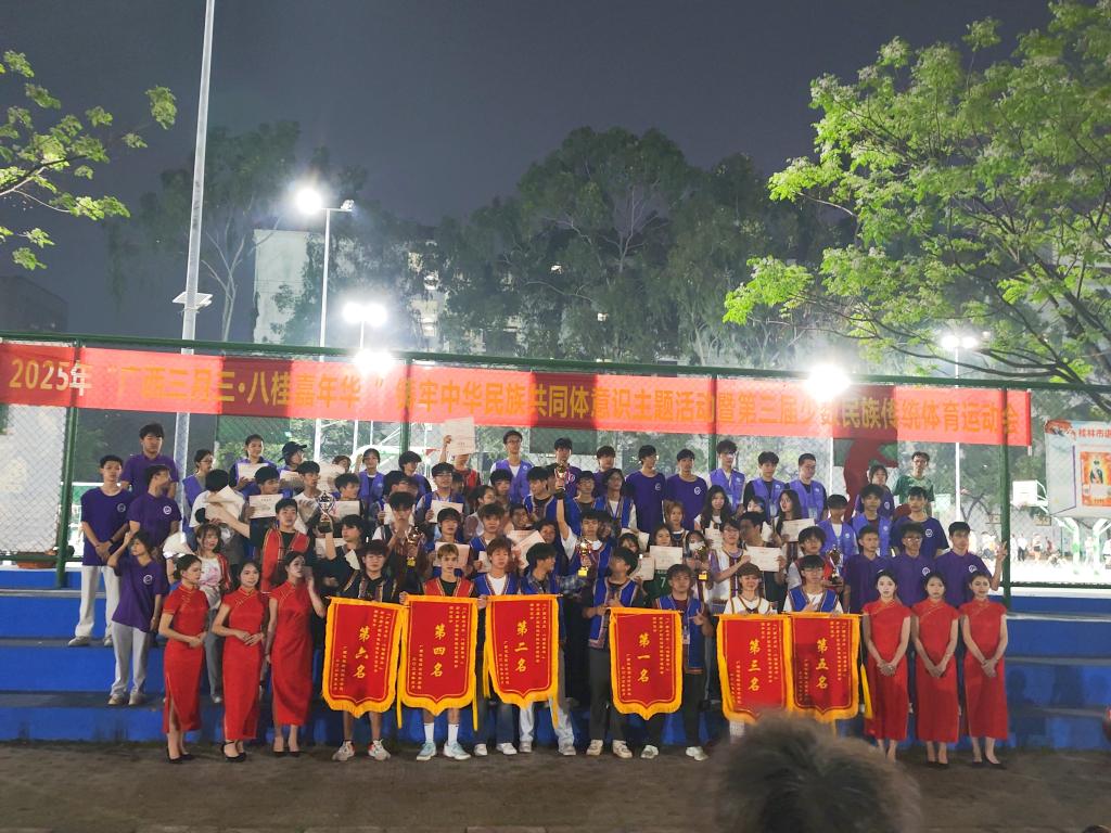 近日,学校“广西三月三·八桂嘉年华”第三届少数民族传统体育运动会圆满落幕,我院学生在赛场上团结协作、奋勇拼搏,凭借出色的表现荣获团体总分第二名的优异成绩,并在多个项目中取得亮眼名次,其中背篓绣球项目、三人板鞋项目均荣获第一名,旱地赛龙舟项目荣获第二名,高杆绣球项目荣获第三名。