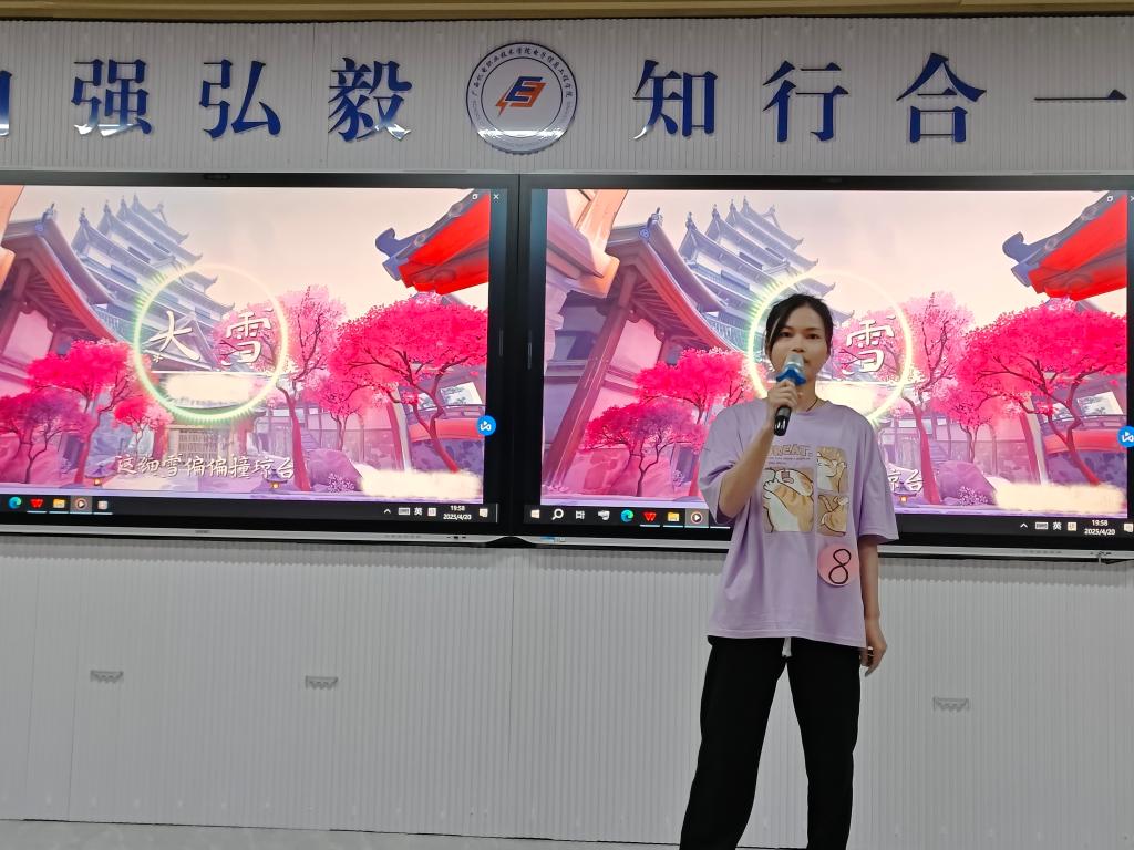 4月20日晚,我院“唱响青春 声耀未来”2025年校园“十大歌手”大赛决赛在学院A7-311圆满落幕。学院师生齐聚一堂,共同见证十位实力唱将以歌声为笔、舞台为卷,绘就一场青春与梦想交织的音乐盛宴。学院团委书记陈婷、专职辅导员韦依玲和覃筱桃老师出席并担任评委。