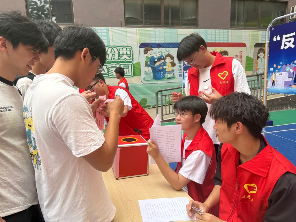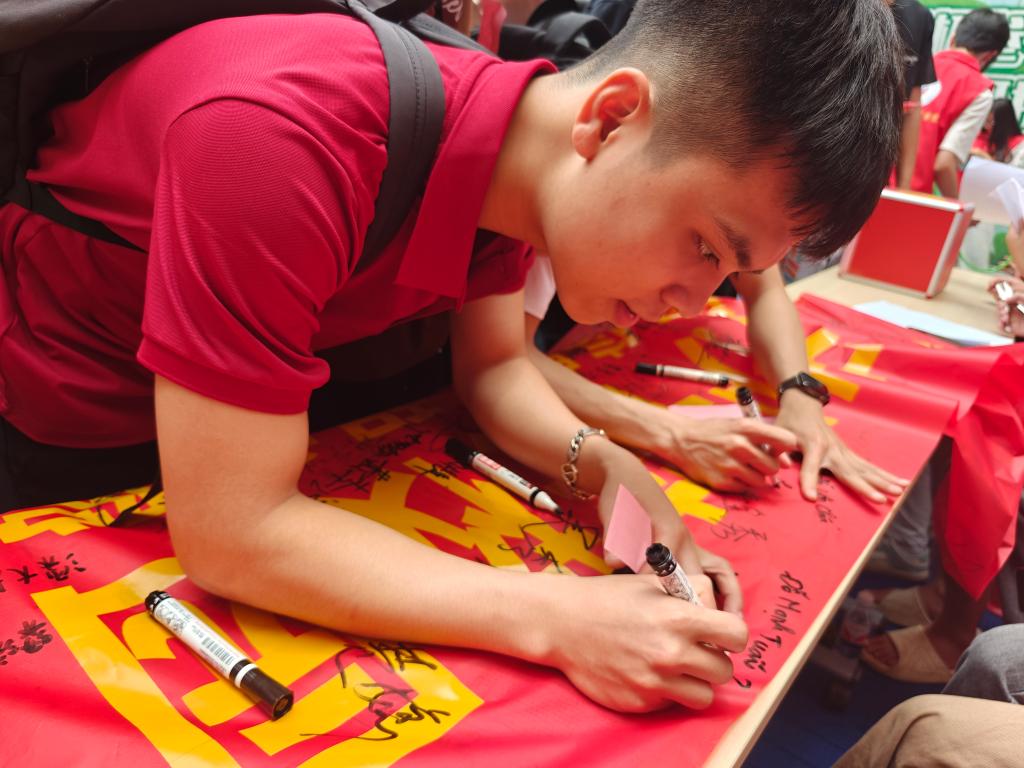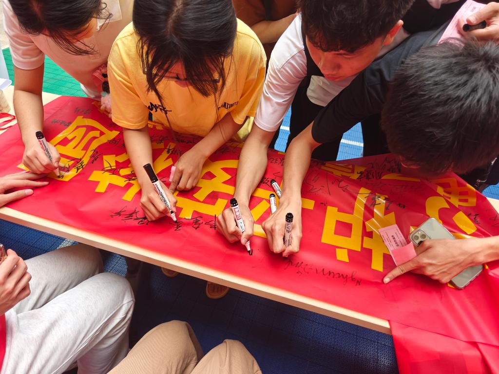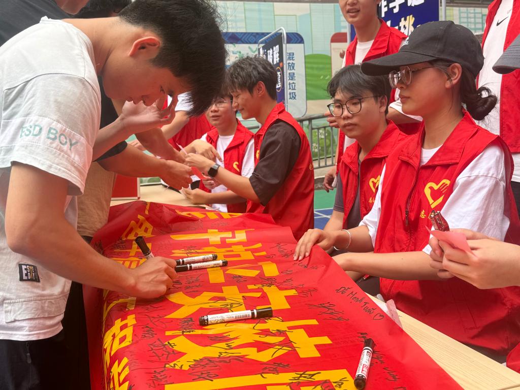 在“反诈签名承诺”区域,一条印着“共筑防诈防线,守护平安校园”标语的横幅格外引人注目。同学们纷纷拿起笔,在横幅上郑重签下自己的名字,许下反诈承诺。每一个签名都承载着责任与担当,彰显了同学们积极参与反诈行动、共同维护校园安全的坚定决心。这一环节进一步增强了同学们的反诈意识,营造了全员参与、共同反诈的良好氛围。
