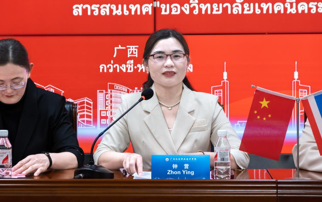 国际教育与合作交流科科长钟营在致辞中对学员们顺利完成培训表示热烈祝贺,高度赞扬了双方团队为此次培训付出的辛勤努力。她指出,此次培训活动是万象城官网国际交流合作的重要成果之一,通过培训不仅增进了中泰两国院校之间的友谊,也促进了中泰两国文化的交流与融合。她期望,中泰双方以职业教育为桥梁,努力把构建中泰命运共同体转化为具体生动的实践,持续深化“一带一路”职业教育合作,共同书写区域经济协同发展的崭新篇章。