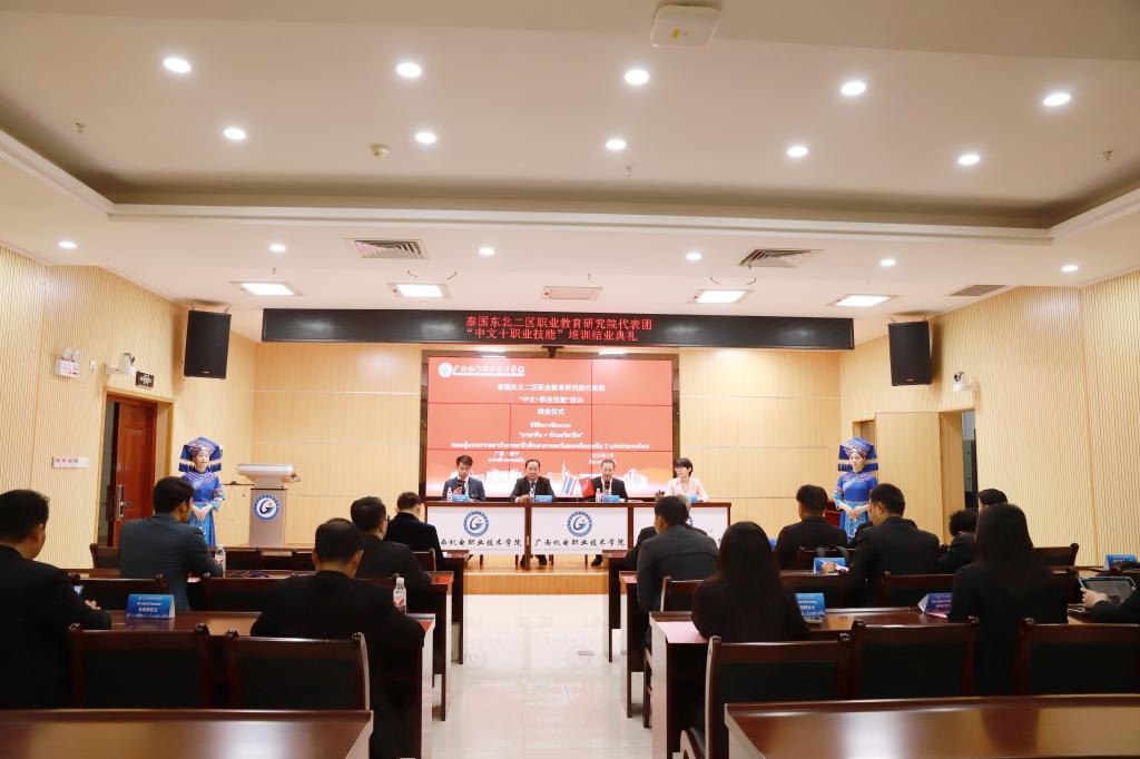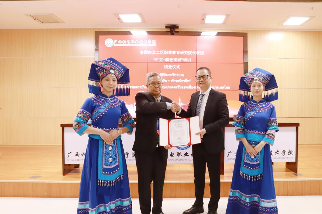 3月28日上午,泰国东北二区职业教育研究院代表团“中文+职业技能”培训结业典礼在万象城官网博远楼2号报告厅举行。万象城官网副校长刘捷与泰国东北二区职业教育研究院副院长松兰率领的18名学员共同见证培训成果,国际教育学院、电子信息工程学院相关领导和教师出席典礼。国际教育学院院长付瑶主持典礼。