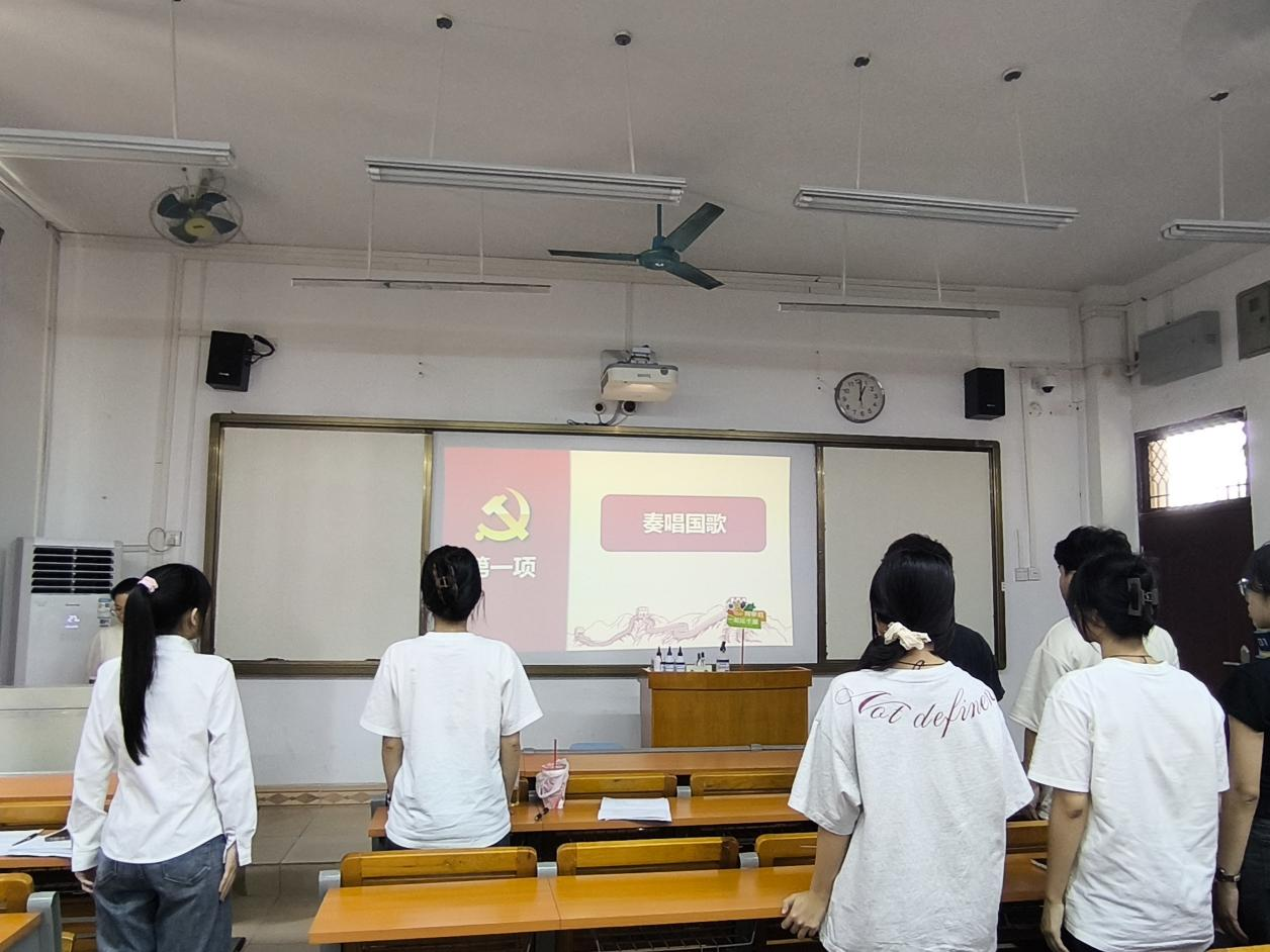 支部大会开始,全体成员庄严肃立,高唱国歌。礼毕,支部书记陈婷领学《党政机关厉行节约反对浪费条例》,引导全体成员树立勤俭节约意识,筑牢思想防线。