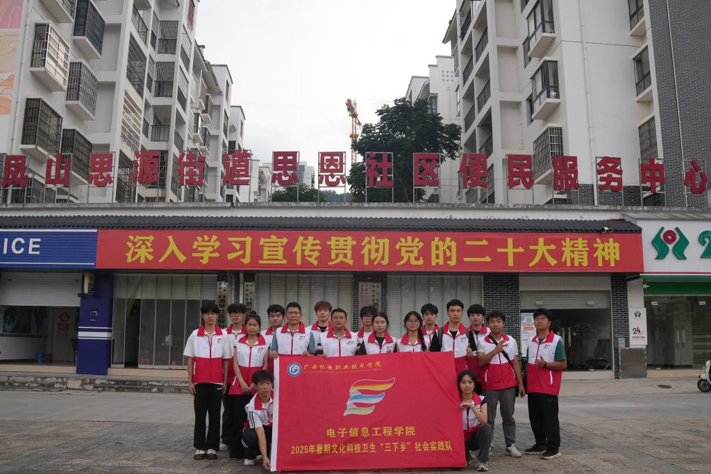 为深入学习贯彻党的二十大精神,引领青年学生在乡村振兴实践中“受教育、长才干、作贡献”,7月10日至17日,我院电子信息工程学院率全国青年文明号(电子科技协会)师生奔赴广西凤山县,开展“青春为中国式现代化挺膺担当”主题系列社会实践活动。活动以“科技教育+文化服务+民生帮扶”三位一体模式,精准对接基层需求,通过五大板块行动助力乡村和基层发展,为当地群众带去实实在在的服务与温暖。