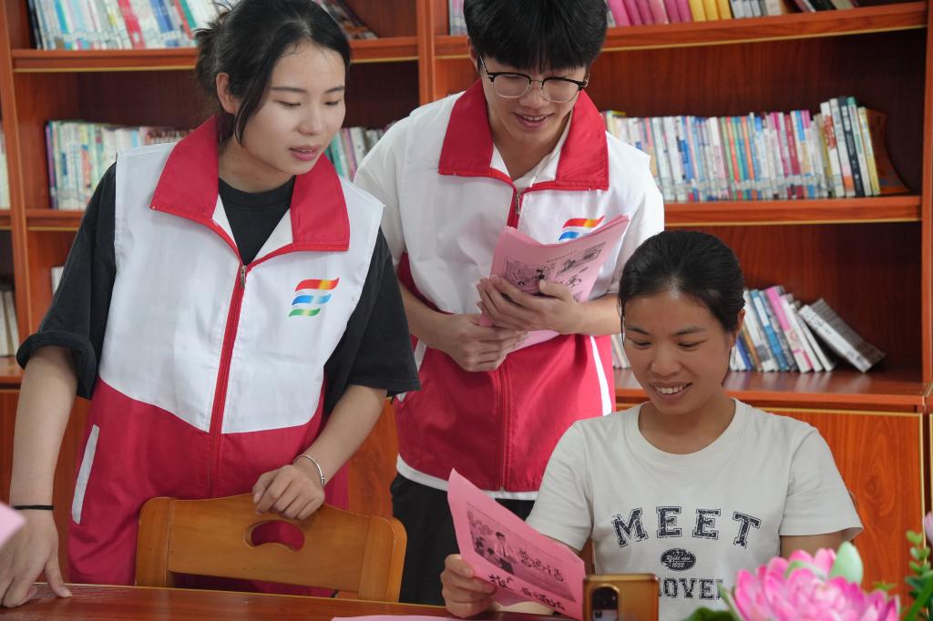 在实践活动的最后一天,“情暖乡村”关爱行动如同一束温暖的光,照亮了乡村的每一个角落。一部分队员带着专业的工具,上门为居民仔细检查着老化的线路、检修家电。发现问题后,他们迅速行动,每一个动作都透露着认真与负责,只为消除潜在的安全隐患。另一部分队员则将满满的关爱送到了孩子们的身边。他们精心准备了100余册课外图书和80多份学习文具。一本本图书,承载着知识的力量;一份份文具,蕴含着美好的期望。这些礼物就像一把把钥匙,为孩子们打开了探索世界的大门。活动接近尾声时,村民们捧着焕然一新的家用电器,眉眼间满是感激。一位热情的老大哥自发号召在场乡亲,用淳朴的山歌表达对团队的赞誉与祝福: