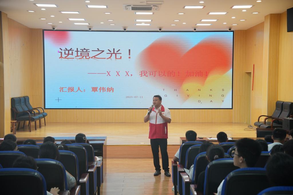 7月11日上午,在凤山县中学,针对乡村青少年心理健康教育资源短缺问题,团队精心打造了“心灵护航计划”。活动以“逆境之光”主题宣讲为开端,通过“动物模仿大赛”“情绪大爆炸”“烦恼气球爆破”等特色团体心理游戏,引导学生在互动中学习情绪管理技巧。特别设立的“心灵树洞”信箱将持续为孩子们提供倾诉空间,建立长效心理支持机制。“很多孩子通过活动第一次意识到,面对心理困扰时不仅可以主动寻求帮助,还可以通过多种方式把消极情绪释放出去。”团队成员李永诺同学在活动后感慨道。