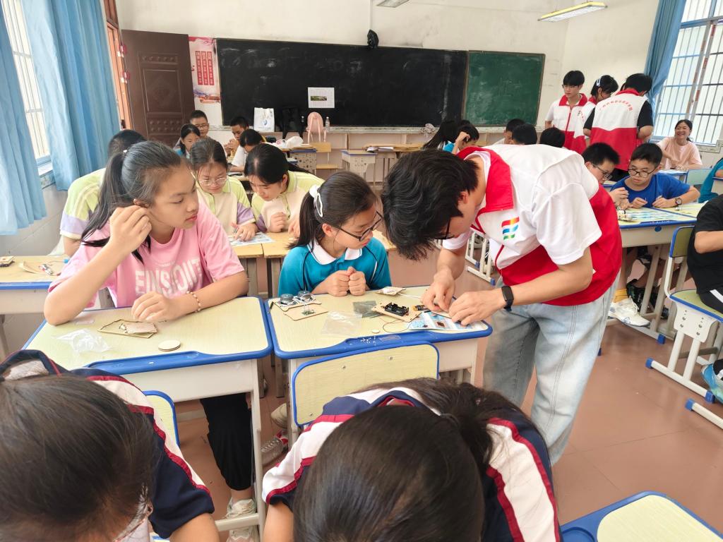 下午,“科技爱国研学营”在凤山县中小学火热开启。实践团队立足“科技爱国”主题,通过精彩纷呈的宣讲和趣味问答,生动展现中国航天、人工智能等领域的辉煌成就,在青少年心中埋下科技报国的种子。活动期间,团队不仅发放了50余份科技素养调研问卷,更精心设计“创客工坊”实践环节,指导学生动手组装智能机器人、智能小车、智能发泡机、智能台灯等科创小作品,让科技创新的种子在欢声笑语中生根发芽。