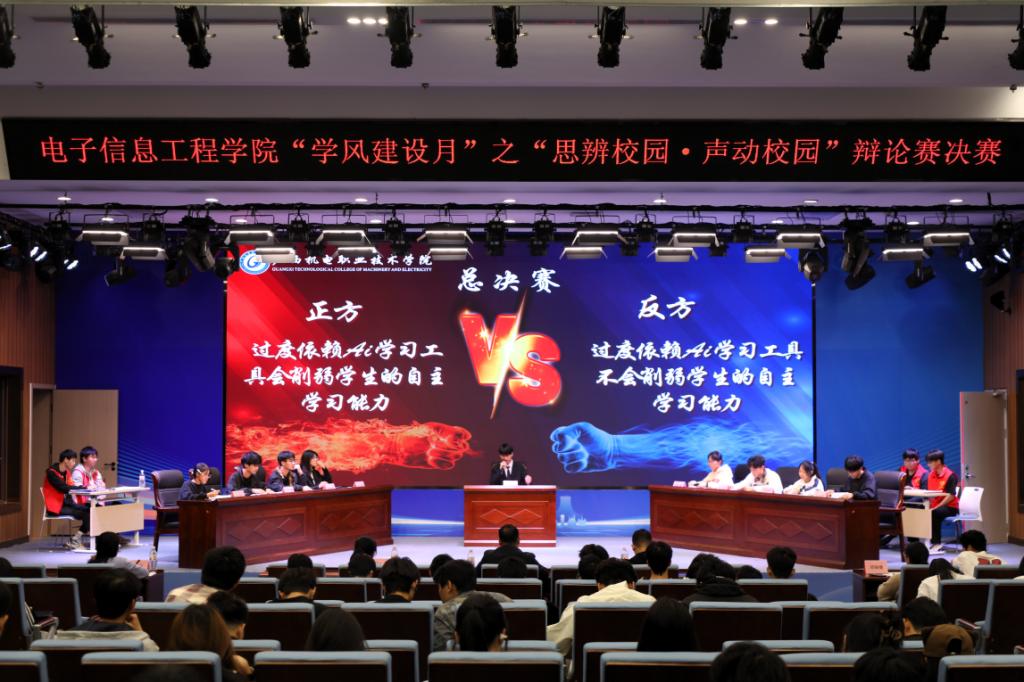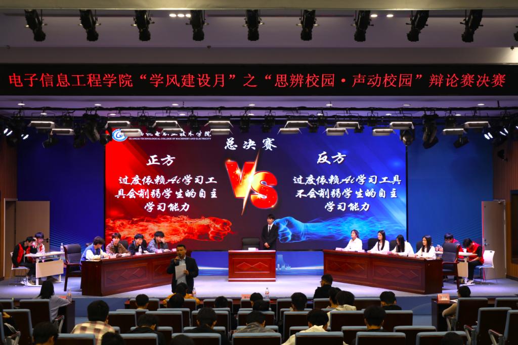 2025年11月4日,电子信息工程学院“学风建设月”系列活动之“思辩校园・声动校园”辩论赛决赛在江南校区A1-301报告厅隆重举行。经过初赛激烈角逐脱颖而出的四支强队,在此展开了一场智慧与口才的巅峰对决,为全院师生带来了一场思维的盛宴。