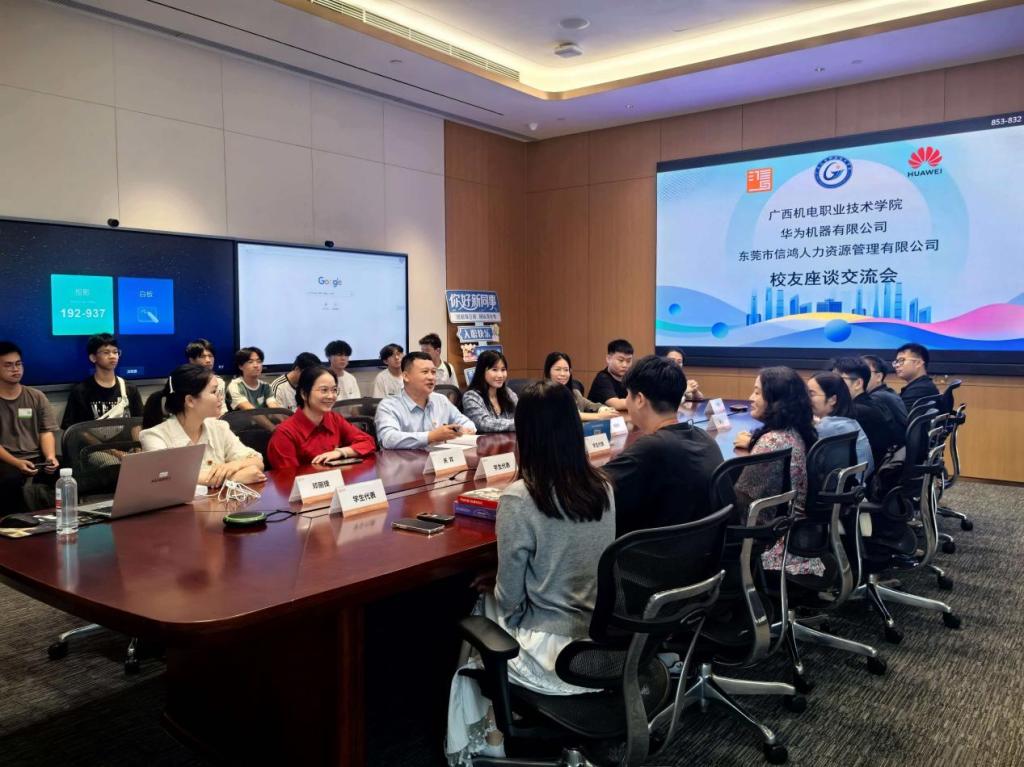 2025年10月31日,电子信息工程学院党委副书记覃伟纳率电子信息工程学院学生第一、第二支部教师党员奔赴华为机器技术有限公司开展实习学生护航行动,为在企学子送去温暖与关怀。
