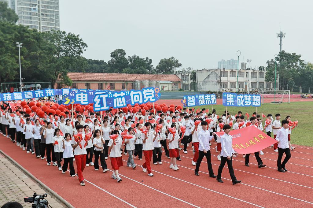 11月6日上午,运动会开幕式在激昂的进行曲中拉开帷幕。由我院200名学子组成的方阵,步伐整齐,意气风发,成为开幕式上一道亮丽的风景线。他们高喊“红芯向党,集成梦想;电启新章,智领未来”的响亮口号,铿锵有力的声音回荡在运动场上空,不仅彰显了我院学子昂扬向上的精神风貌,更表达了他们将专业理想与时代使命紧密结合的坚定决心。