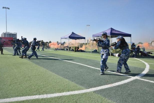 自11月16日起,学院学子在武警南宁支队教官的专业施训下,秉持“严训、严求、严管”方针,克服风雨挑战,全身心投入队列、格斗、战术等训练。分列式上,学院方队步伐铿锵如铁,铸就坚不可摧的“青春城墙”;格斗拳、匕首操等科目中,学子们拳风凌厉、动作精准,尽显机电青年锐气。训练中,学子们锤炼意志、凝聚力量,国防观念与团队协作能力显著提升。