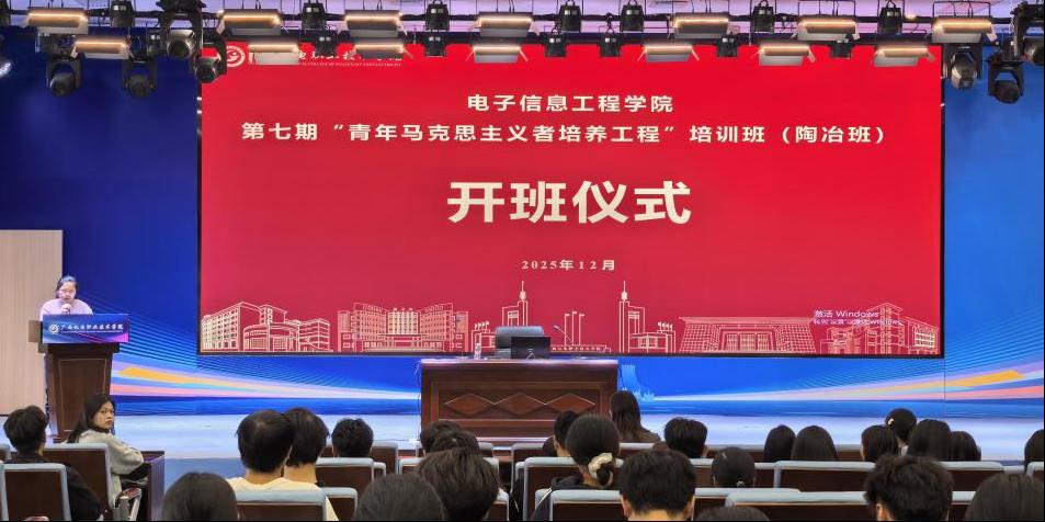 2025年12月9日,电子信息工程学院举办第七期“青年马克思主义者培养工程”培训班(陶冶班)开班仪式。仪式由学院团委书记陈婷主持,全体“青马班”学员齐聚一堂,共同开启新一轮理论学习和实践锻炼的征程。