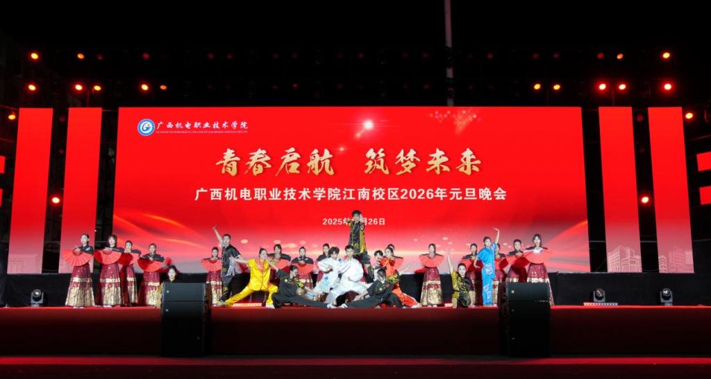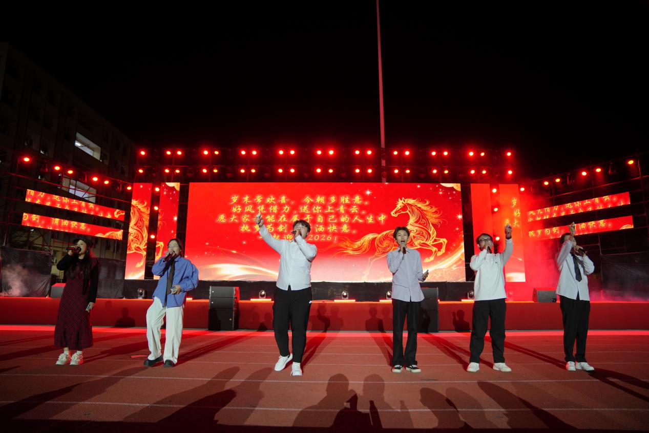 2025年12月26日19时,江南校区田径运动场上灯火璀璨、欢声如潮,由江南校区三个学院联合主办的2026年元旦晚会在此隆重举行。我院积极参与晚会筹备与演出,献上多个精心编排的节目,与全体师生共赴一场辞旧迎新的视听盛宴,喜迎新年到来。