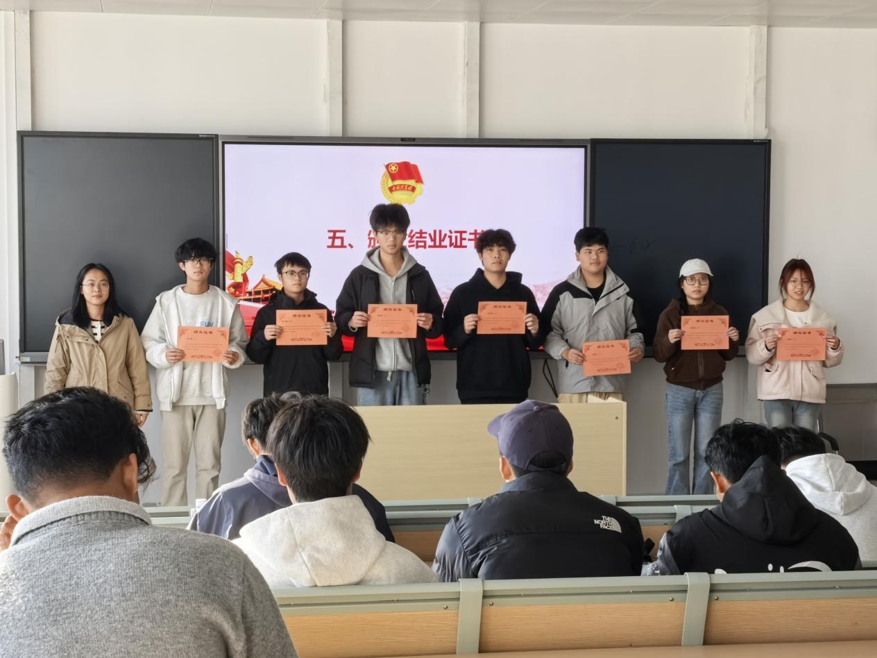 为深入贯彻落实习近平总书记关于青年工作的重要思想,着力培养青年马克思主义者,引导广大青年坚定理想信念,电子信息工程学院第七期“青年马克思主义者培养工程”陶冶班于2025年12月9日正式开班,历时近一个月,圆满完成各项培训任务,并于2026年1月6日下午在A1-404教室隆重举行结业典礼,全体学员参加。
