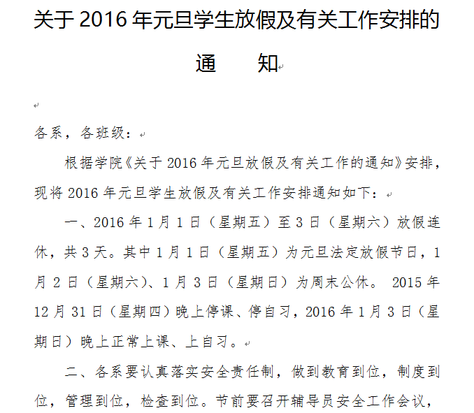 转发关于2016年元旦学生放假及有关工作安排的通知