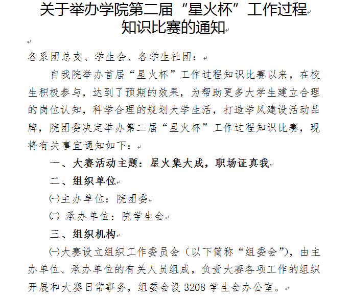 转发关于举办学院第二届“星火杯”工作过程知识比赛的通知