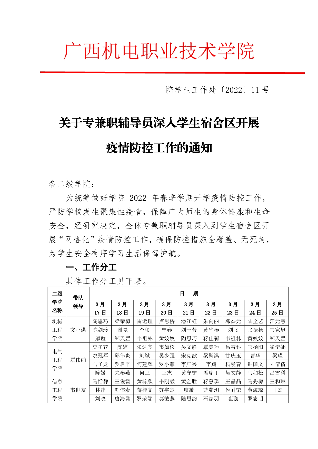 关于专兼职辅导员深入学生宿舍区开展疫情防控工作的通知