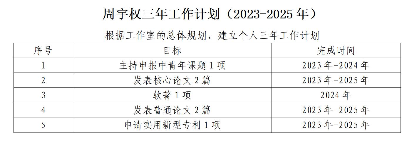 钟国文名师工作室成员三年工作计划(2023-2025年)(周宇权)