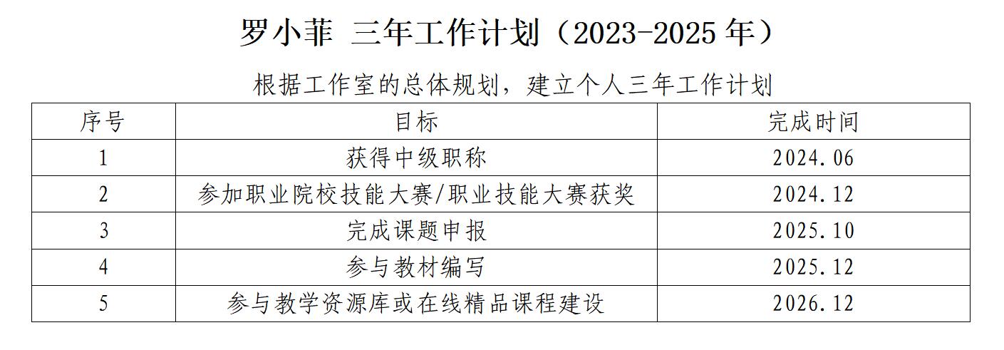 钟国文名师工作室成员三年工作计划(2023-2025年)(罗小菲)