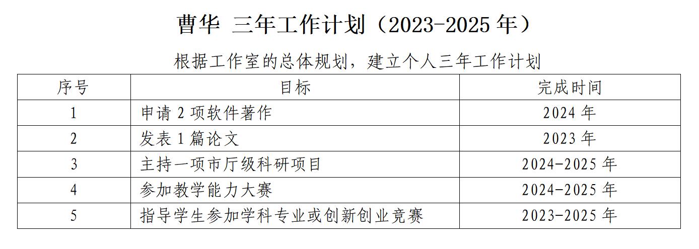 钟国文名师工作室成员三年工作计划(2023-2025年)(曹华)